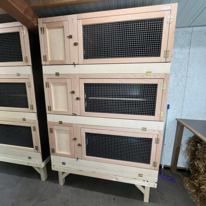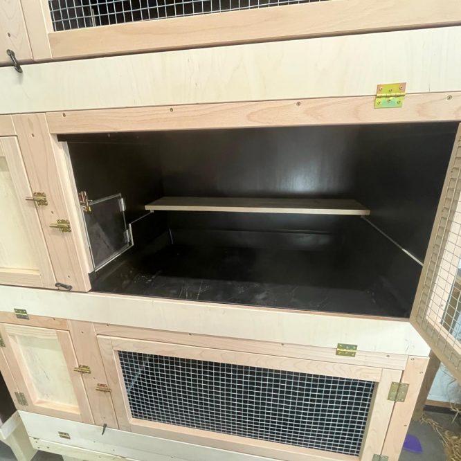 Kaninchenstall aus brauner Siebdruckplatten mit Kotwannen