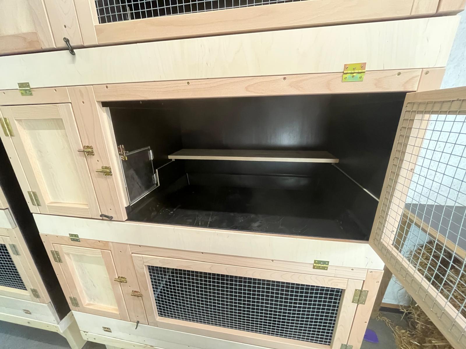 Kaninchenstall aus brauner Siebdruckplatten mit Kotwannen