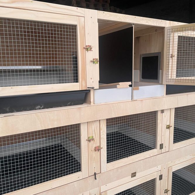 Unsere 9 Boxen Kaninchenställe können auch als Kaninchenstall mit Wurfbox genutzt werden.