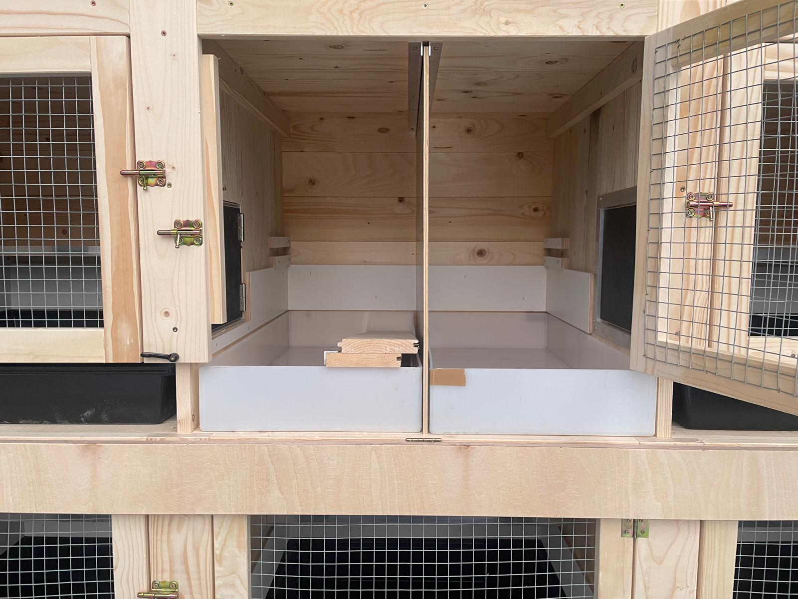 Unsere 9 Boxen Kaninchenställe können auch als Kaninchenstall mit Wurfbox genutzt werden.