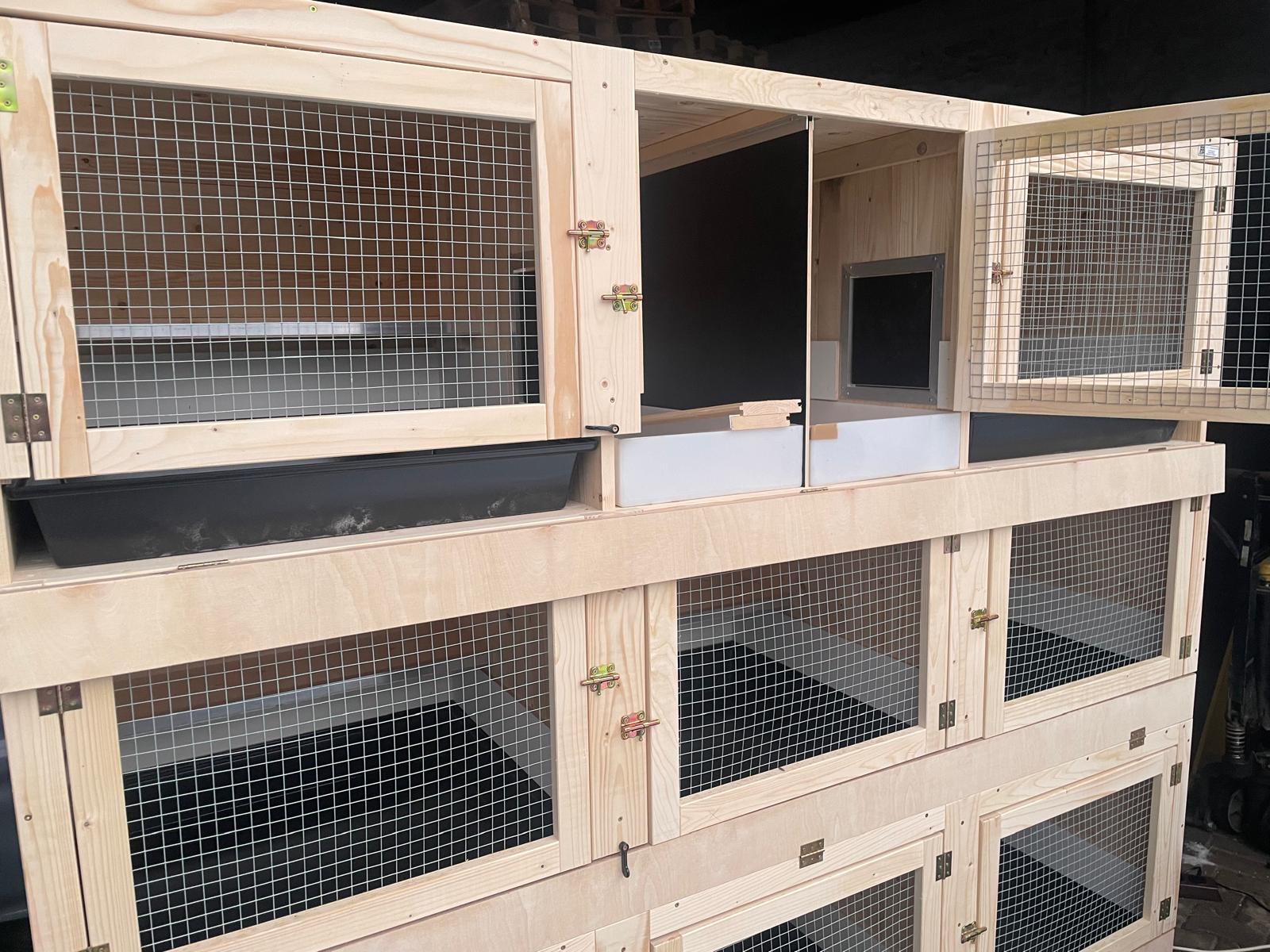 Es können alle 9 Boxen Kaninchenställe mit integrierten Wurfboxen angefertigt werden.